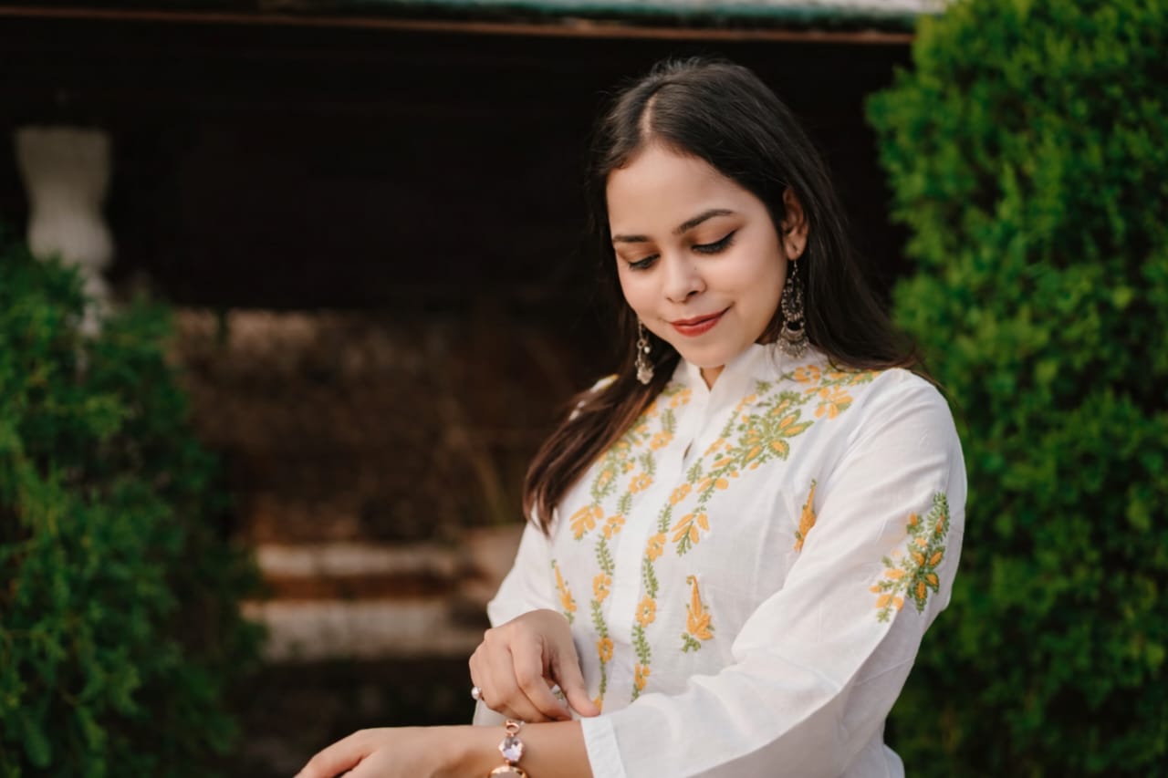 Born in the timeless lanes of Lucknow, Chikankari is a delicate hand embroidery tradition shaped by patience, grace, and generations of skilled hands. Each motif is created stitch by stitch, often taking days to complete, reflecting a quiet devotion to beauty and craft.